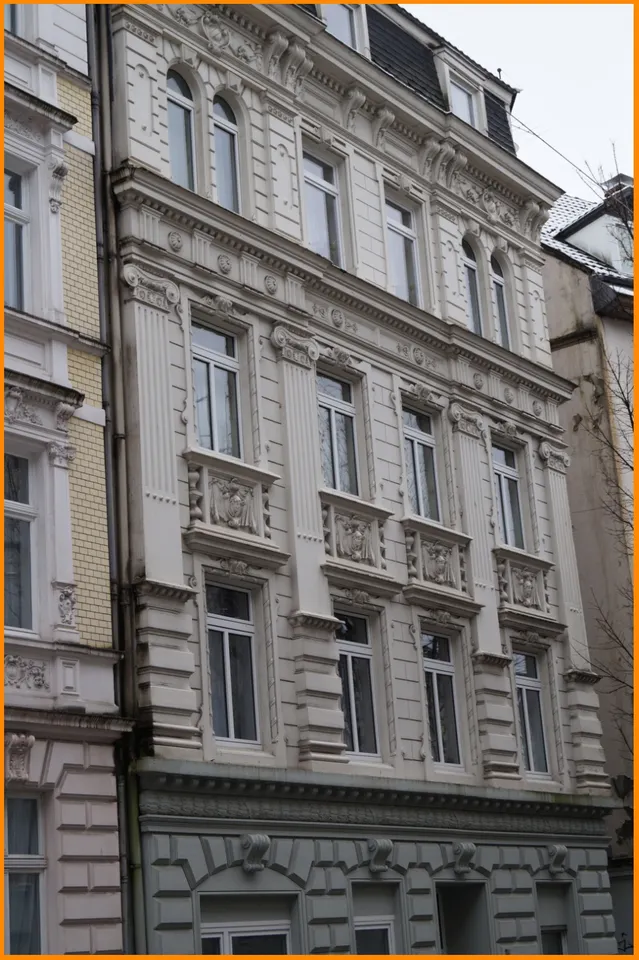 Die schöne Altbauwohnung in Elberfeld bietet auch als Dachgeschosswohnung genügend Stauraum, da sie keine Schrägen hat. Das Haus wurde 1898 gebaut und steht unter Denkmalschutz.
