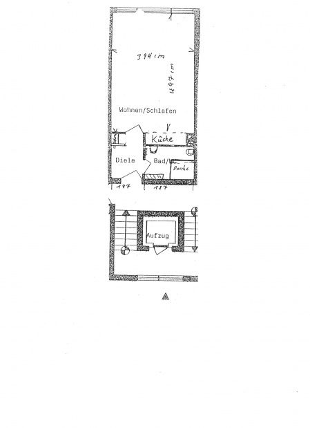 In diesem Mehrfamilienhaus liegt im 5. Stock dieses 32 m² grosse Appartement mit kleiner neuwertiger Pantryküche, Diele und Bad.