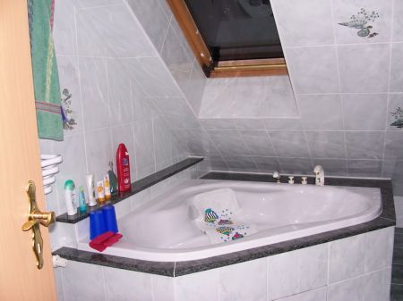 Im Erdgeschoß befindet sich eine Küche, ein Wohnzimmer, ein Schlafzimmer, ein Gäste WC ( WC, Handwaschbecken, Dusche und Waschmaschinenanschluß ) und eine Abstellkammer. Im Obergeschoß sind drei weiter Schlafzimmer und ein Bad.