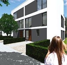 Die Häuser des Haustyps B bieten klug gestalteten Wohnraum mit insgesamt fünf Zimmern, auch großzügig bemessene Abstellmöglichkeiten fehlen nicht. WC, Küche und Wohnraum im Erdgeschoss werden ergänzt durch ein gleich am Eingangsflur gelegenes Zimmer mit eigenem Gartenzugang. Vom Wohnbereich tritt man heraus auf die großzügige Terrasse, der Garten ist auch vom kleinen Zimmer und der Küche aus zugänglich. Im Obergeschoss finden sich neben dem Bad weitere drei Zimmer.Die Haushälften bieten ca. 122 Quadratmeter reine Wohnfläche, die durch eine mehr als 12 Quadratmeter große Gartenterrasse ergänzt wird. Rechnerisch nach DIN ergibt sich eine Wohnfläche von über 126 Quadratmetern. Die Grundstücke sind ca. 348 bis 530 Quadratmeter groß.