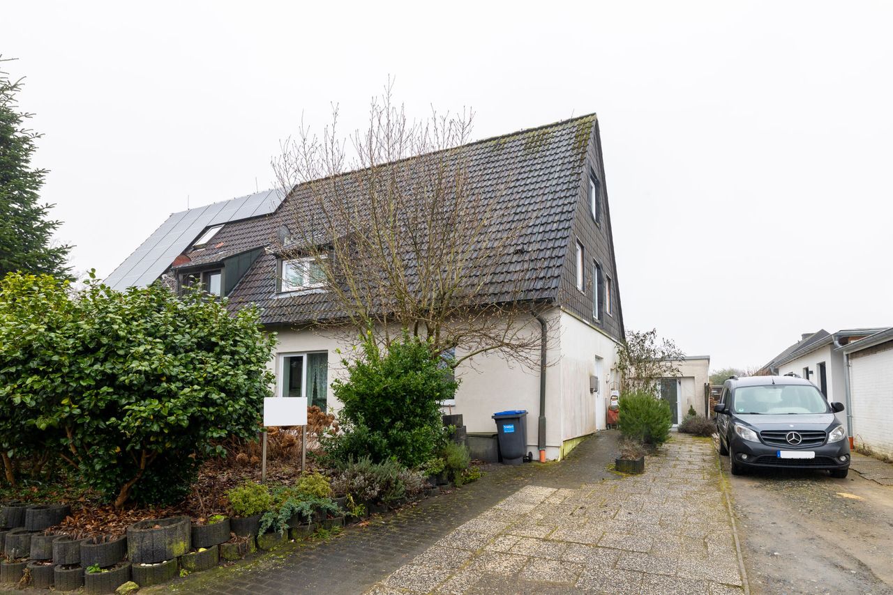Willkommen in Greven, wo sich die charmante Doppelhaushälfte befindet, die nicht nur durch ihre großzügige Wohnfläche von 128 Quadratmetern beeindruckt, sondern auch durch die besondere Lage besticht. Das im Jahr 1950 erbaute Haus erstreckt sich auf einem Grundstück von 440 Quadratmetern und bietet damit ausreichend Platz für individuelle Wohnträume.