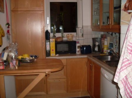 Die 52 qm Wohnfläche teilen sich auf drei freundliche Zimmer, eine kleine Küche und ein Dusch-Badezimmer auf. Alle Räume sind mit Laminat verlegt, Küche und Badezimmer sind mit hellen Fliesen ausgestattet.