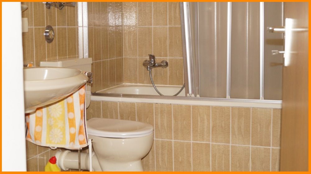 Das Wohnzimmer hat eine Ausgang zu einem kleinen Balkon der zur Straße ausgerichtet ist. Der 2. größere Balkon befindet sich im Schlafzimmer der auf der Rückseite liegt. Das Wannenbad ist innenliegend, zusätzlich gibt es noch ein Gäste-WC.
