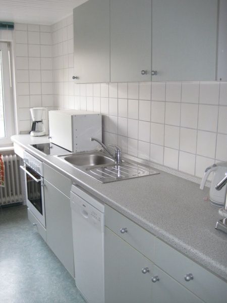 Zu dieser offen geschnittenen 2 Zimmerwohnung im Obergeschoss des Hauses führt eine Treppe in einen großen Flur – diese Wohnung beinhaltet ein großes Wohnzimmer zur rechten Seite sowie ein Schlafzimmer zur linken Seite des Flurs. Die Küche hat eine Einbauküche, die wenn gewünscht vom Vormieter übernommen werden kann. Zusätzlich grenzt an die Küche eine kleine Vorratskammer.