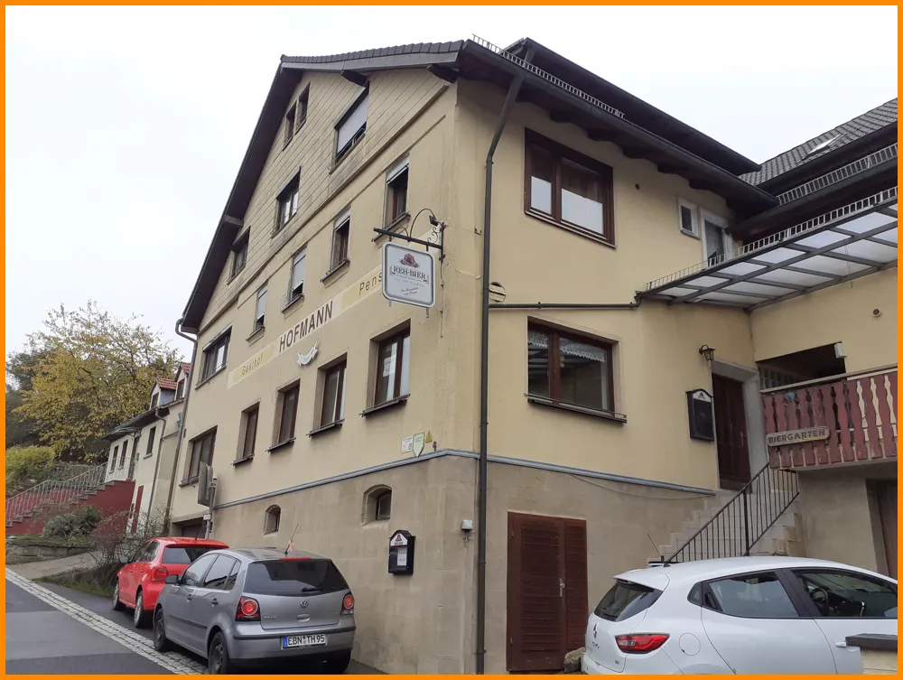 Das Haupthaus wurde ca. 1880 erbaut. 1965 angebaut und ein Dachausbau vollzogen. 1977 kernsaniert und umgebaut, Terrassenüberdachung und eine komplette Dacheindeckung ca 1997. Die ca 575 m² Wohnfläche verteilen sich wie folgt. Im Erdgeschoss befinden sich 8 Zimmer mit einer Fläche von Gesamt ca. 196 m². Im 1 OG werden auf ca. 100 m² 6 Zimmer mit Bad geboten und im 2 OG auf ca. 95 m² 4 Gästezimmer mit Nasszellen.