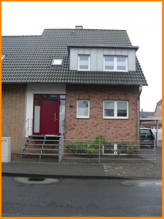 Zum Haus gehört ein kleiner Vorgarten, die eigene Grundstückszufahrt mit Carport und ein zusätzlicher Stellplatz.