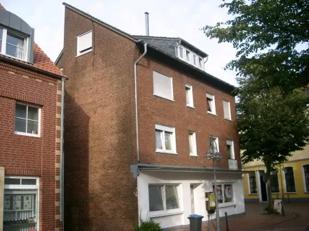 sich auf ca. 144 m² Gewerbeflächen und in den oberen 3 Etagen