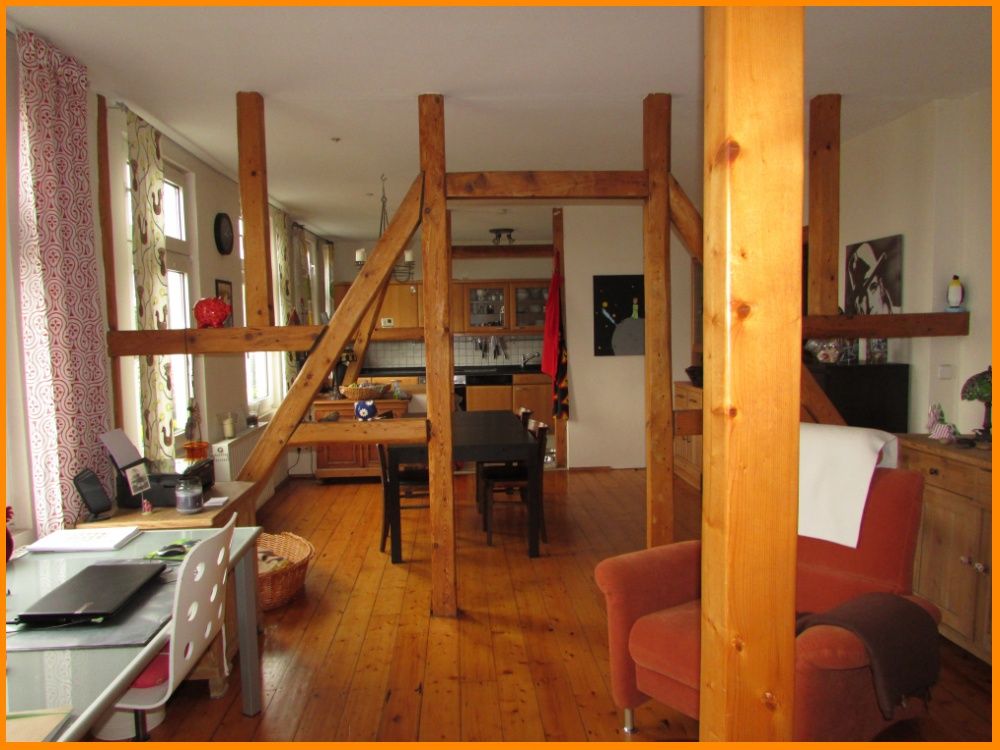 In dieser Urgemütlichen sehr hellen und Familienfreundlichen Dachgeschossmaisonette Wohnung fühlt sich die ganze Familie wohl. In dem großen Wohn/Ess und Kochbereich ausgelegt mit Holzdielen,und offenem Fachwerk abgetrennt gibt diesem Raum das gewisse etwas.